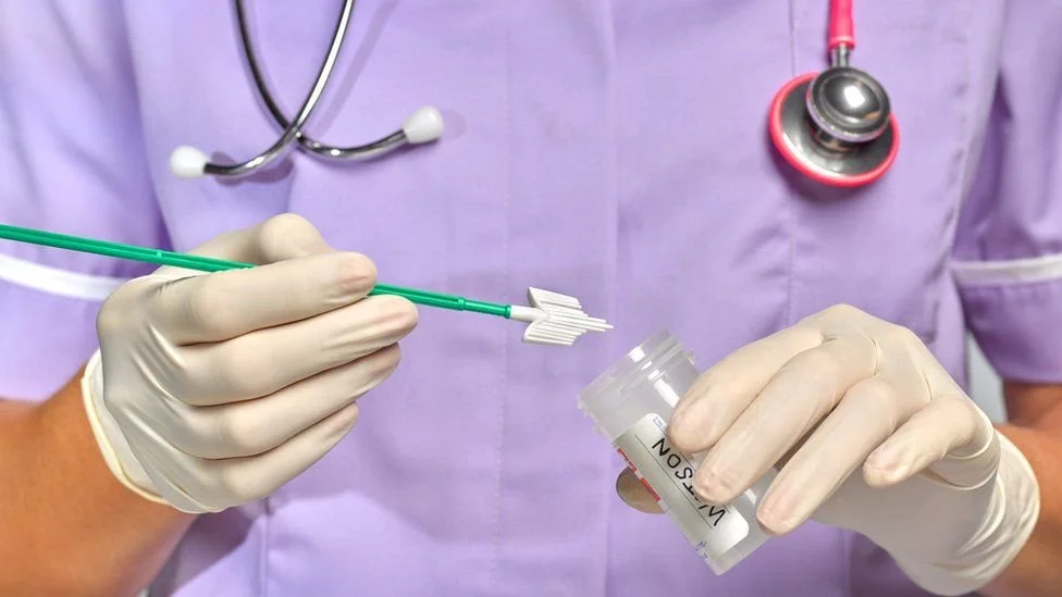There are two types of cervical cancer screenings available: a pap test (or pap smear) and an HPV test. Both pap tests and HPV tests are conducted on cells collected from around the cervix.